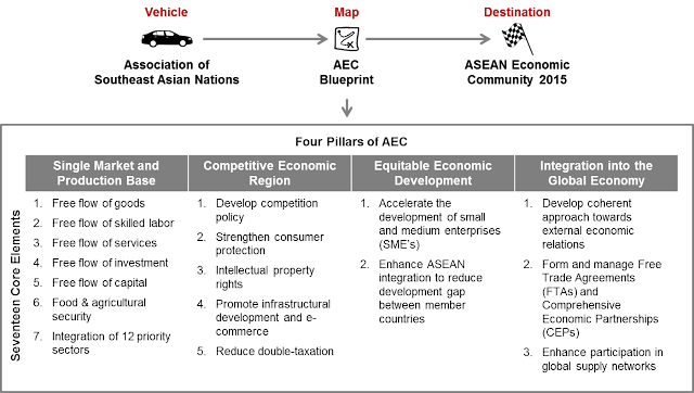 Dikatakan setelah AEC terimplementasi secara sepenuhnya, akan wujud sebuah rantau yang bebas pergerakan keluar masuk barangan dan servis, tenaga buruh, dan aliran modal yang lebih bebas diantara negara-negara ahli. Jadi, dalam kata mudah AEC akan mewujudkan sebuah rantau dengan kuasa ekonomi yang besar, berdasarkan bilangan kuasa pengguna yang tinggi dan modal yang lebih besar berdasarkan aliran modal yang bebas.